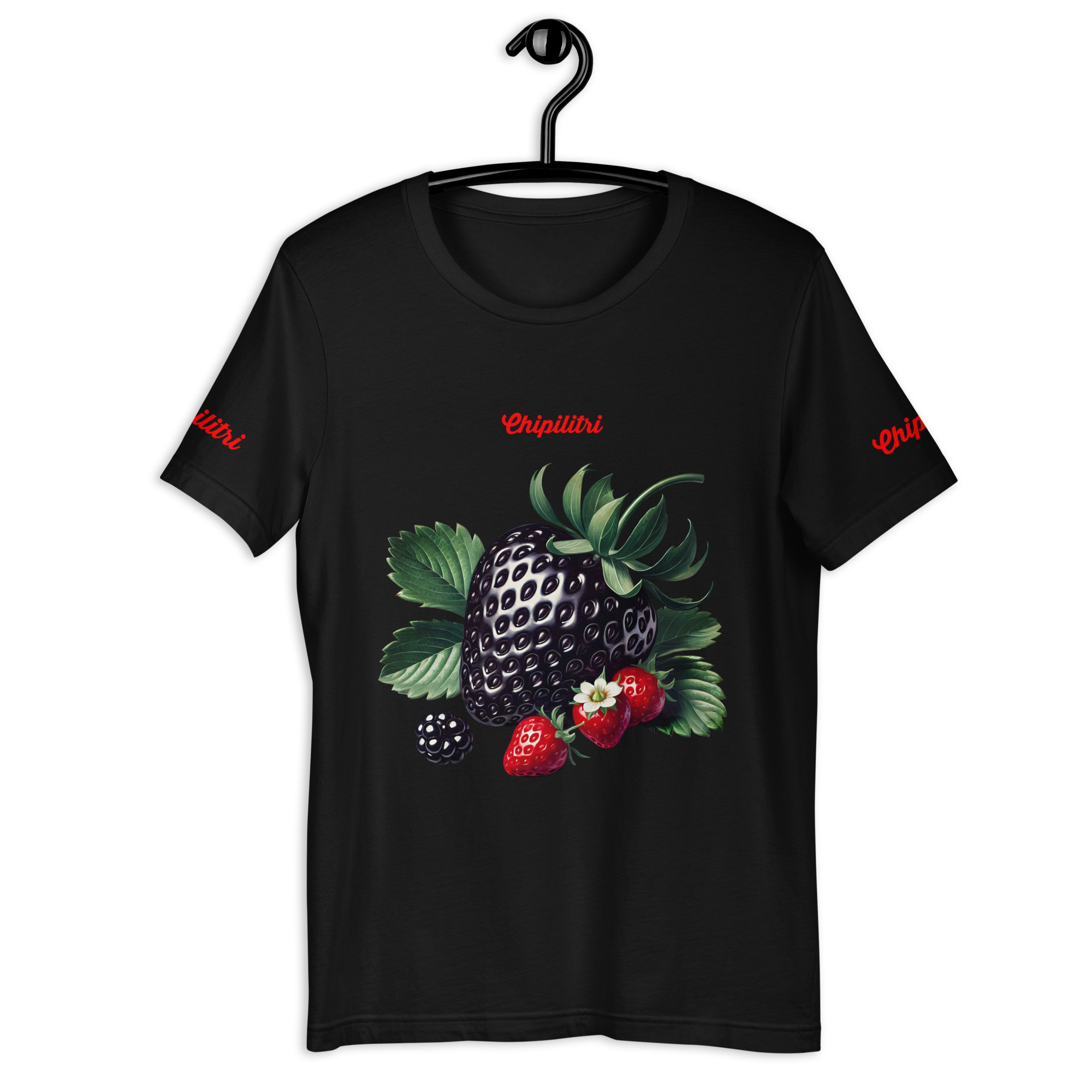 🖤 Esta camiseta no solo se lleva, se saborea. Fresas negras con pinceladas de rojos sobre el fondo negro intenso de esta prenda ecológica que combina diseño, comodidad y sostenibilidad. El corte clásico y el tejido ligero hacen que sea la elección perfecta para quienes buscan marcar tendencia desde el corazón.