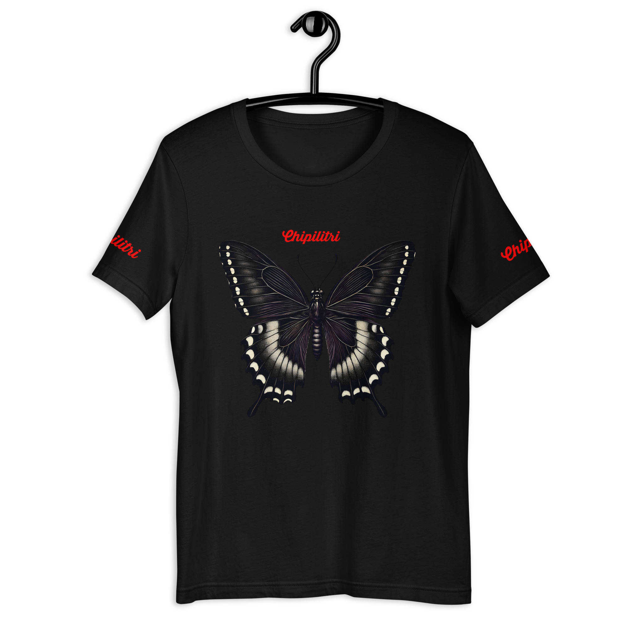 🖤 No todas las mariposas brillan con colores; algunas susurran en sombras. Esta prenda de la colección #chipilitriBLACK-ECO presenta un diseño sutil para almas que encuentran luz en lo escondido.